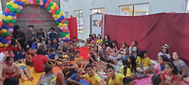 A Secretaria Municipal de Assistência Social realizou na tarde desta quarta-feira (12/07), o primeiro Cineminha de Férias do Serviço de Convivência e Fortalecimento de Vínculos (SCFV), a ação contou com uma tarde muito divertida, com filme e deliciosas guloseimas como: pipoca doce e salgada, amendoim, geladinho, refrigerantes e muita diversão.