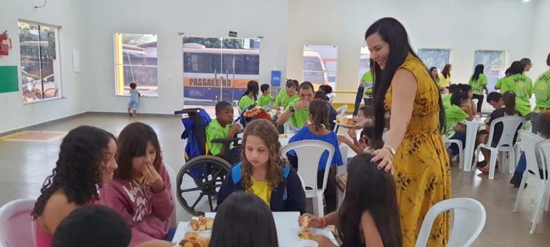 A Secretária de Assistência Social e primeira dama Lorena Ferrari esteve presente recepcionando calorosamente todos os alunos e profissionais da APAE.