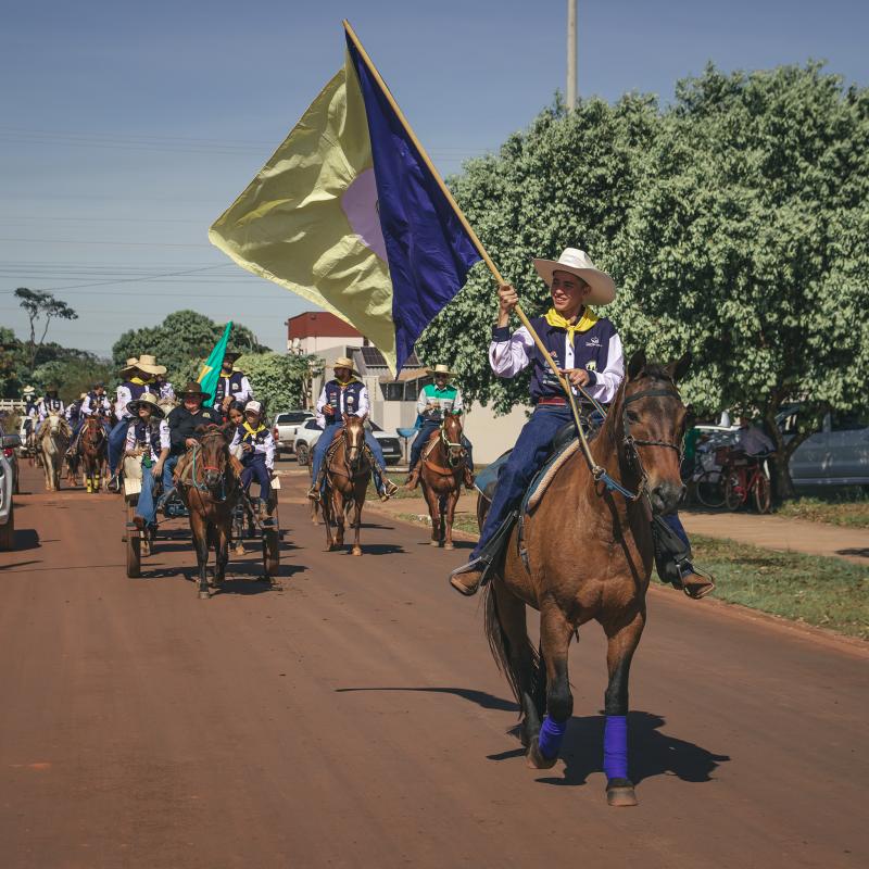 Comitivas de vários municípios, entre eles de Cuiabá, participaram da cavalgada. Durante o encontro, foi feita uma homenagem à Nossa Senhora Aparecida.