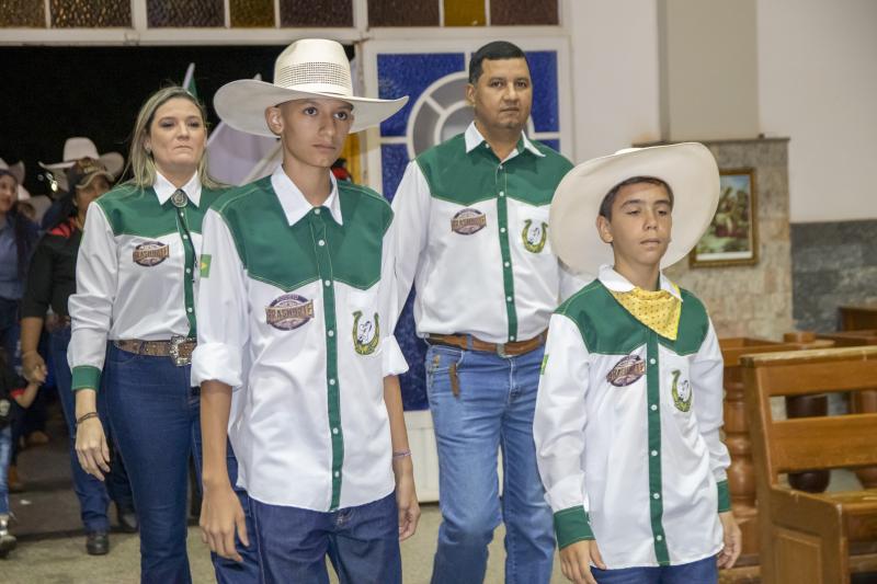 A rainha do rodeio, Maria Eduarda Passamani, e as outras candidatas que concorreram ao título também estiveram presentes na "missa sertaneja".