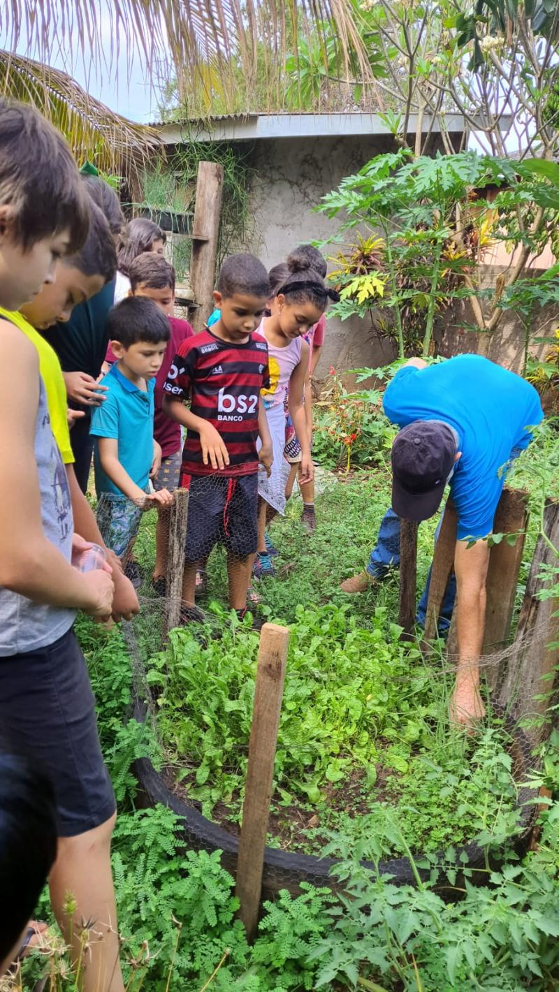 Desta vez, as crianças e adolescentes tiveram a oportunidade de fazer uma aula de campo, na propriedade do Técnico Agrícola Rogério, que ofereceu aos usuários do SCFV, a oportunidade de conhecer de perto uma diversidade de plantas e árvores e todos os cuidados necessários para o bom desenvolvimento das mesmas.