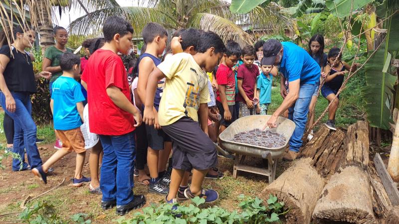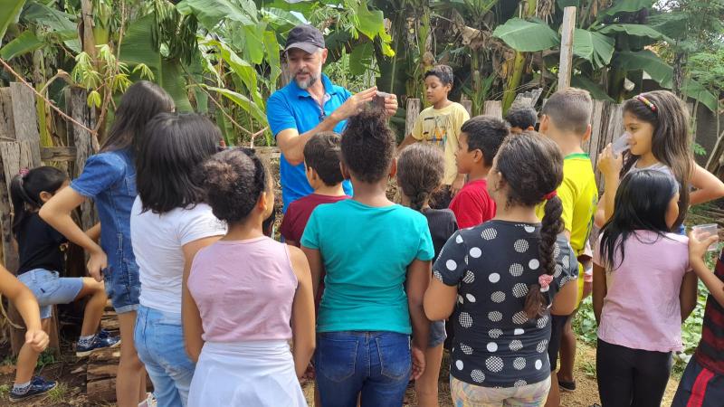 Desta vez, as crianças e adolescentes tiveram a oportunidade de fazer uma aula de campo, na propriedade do Técnico Agrícola Rogério, que ofereceu aos usuários do SCFV, a oportunidade de conhecer de perto uma diversidade de plantas e árvores e todos os cuidados necessários para o bom desenvolvimento das mesmas.