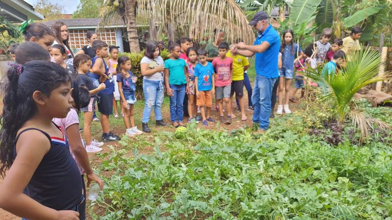 Desta vez, as crianças e adolescentes tiveram a oportunidade de fazer uma aula de campo, na propriedade do Técnico Agrícola Rogério, que ofereceu aos usuários do SCFV, a oportunidade de conhecer de perto uma diversidade de plantas e árvores e todos os cuidados necessários para o bom desenvolvimento das mesmas.
