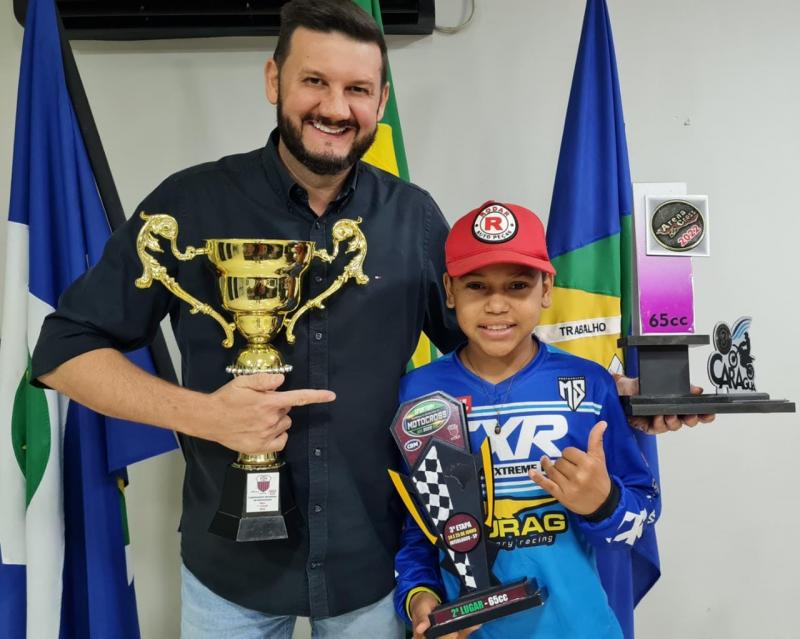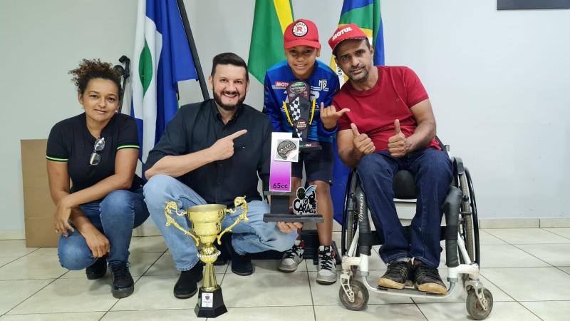 Prefeito Edelo Ferrari recebeu o piloto Gui Ferreira em seu gabinete e disse “É uma honra ter um prodígio de um piloto como você em nosso município, você se seus avos estão de parabéns por estar sempre treinando e te acompanhando Brasil a dentro, podem sempre contar conosco para o que precisar”.
