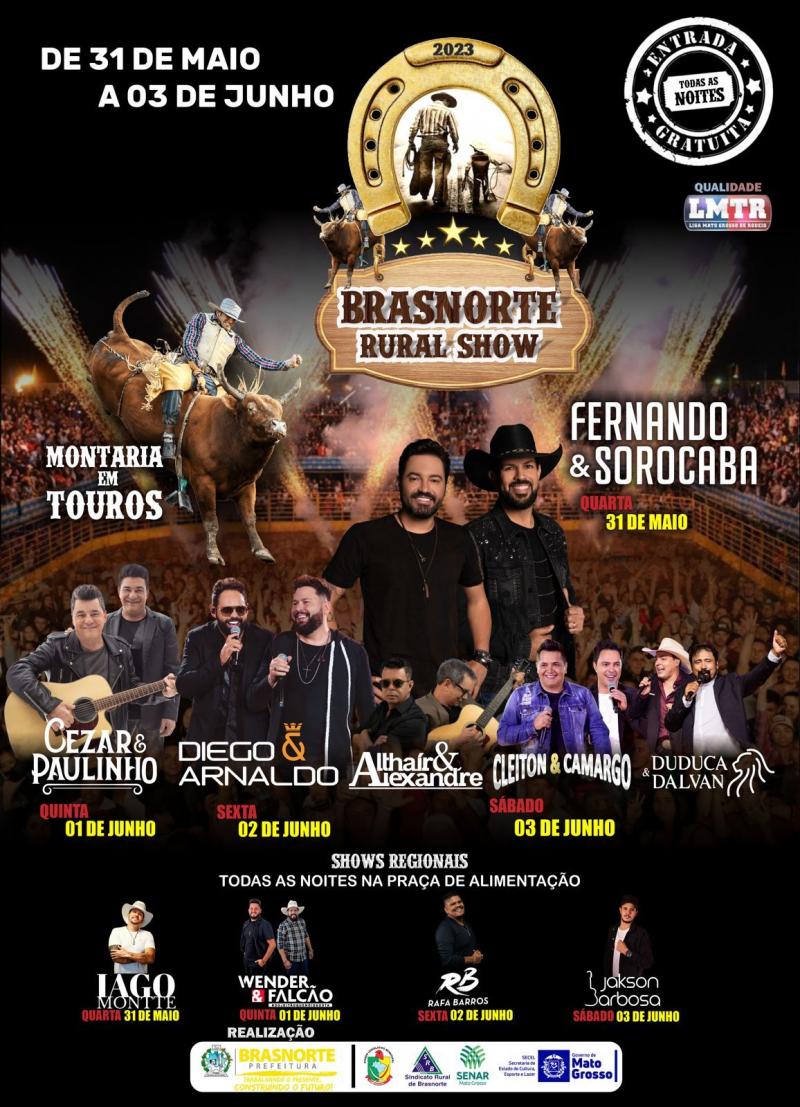 No próximo dia 31 começa a grande festa repleta de atrações, com shows regionais e nacionais, além do tradicional rodeio, paixão dos brasnortenses. A Brasnorte Rural Show segue até o dia 3 de junho.